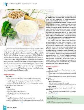 - ความต้องการที่เพิ่มขึ้นส�าหรับโปรตีนจากพืชในอุตสาหกรรมอาหารและเครื่องดื่ม www.researchandmarkets.com/research/swv2vw/asiapacific_