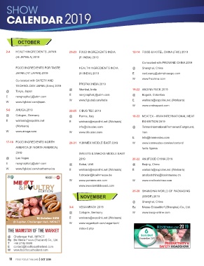 2-4 HEALTH INGREDIENTS JAPAN 21-23 FOOD INGREDIENTS INDIA 12-14 FOOD & HOTEL CHINA (FHC) 2019