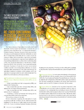 • New commodities and their corresponding MRLs are considered to be a substandard food according to Section 28 of Food