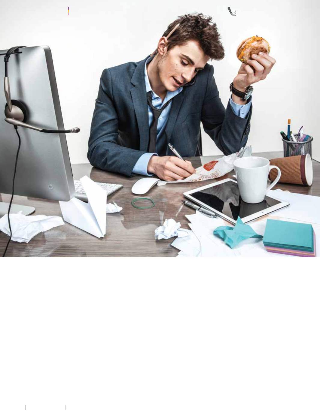 day sittingat their desk, with fiveout of tenworkerseating lunchat theirworkdesk two to five