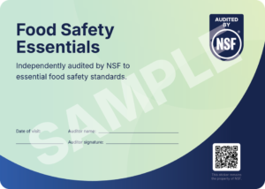 Businesses that successfully meet NSF Food Safety criteria may opt to display the officialNSF Food Safety badge on-site.