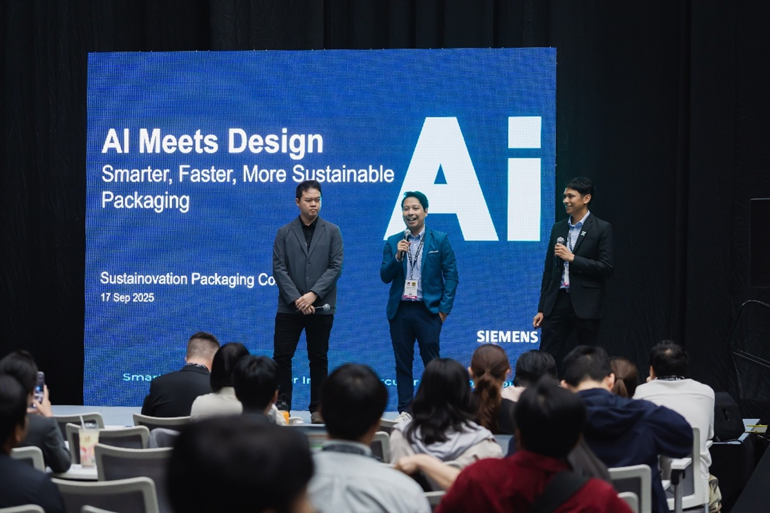Sustainovation Packaging: The Next Chapter of Circular Innovation ถือเป็นเวทีแห่งการรวมตัวของผู้นำอุตสาหกรรม นักนวัตกรรม และผู้ขับเคลื่อนการเปลี่ยนแปลงจากหลากหลายหน่วยงาน โดยได้รับเกียรติจาก คุณสุนทร ยงค์วิบูลศิริ จากสถาบันการจัดการบรรจุภัณฑ์และรีไซเคิลเพื่อสิ่งแวดล้อม (TIPMSE) สภาอุตสาหกรรม ในการนำเสนอแนวทางเชิงกลยุทธ์สำหรับการเปลี่ยนผ่านของอุตสาหกรรมบรรจุภัณฑ์ไทยสู่ เศรษฐกิจหมุนเวียน (Circular Economy) โดยเน้นย้ำถึงสถานการณ์สิ่งแวดล้อมโลกและปริมาณขยะบรรจุภัณฑ์ที่ไม่อาจมองข้ามได้ รวมถึงการนำหลักการ Extended Producer Responsibility (EPR) มาบังคับใช้ ซึ่งกำหนดให้ผู้ผลิตต้องรับผิดชอบตลอดวงจรชีวิตของบรรจุภัณฑ์ อีกทั้งยังกล่าวถึงหัวใจสำคัญอย่างการส่งเสริม Eco Design และ Design for Recycle (D4R) เพื่อตอบโจทย์การออกแบบบรรจุภัณฑ์ให้สามารถรีไซเคิลได้จริงและง่ายขึ้น ภายในงานยังมีอีกหนึ่งประเด็นการบรรยายที่น่าสนใจอย่างยิ่งในอุตสาหกรรม กับแนวทางการนำเทคโนโลยีปัญญาประดิษฐ์ (AI) และระบบ Digital Twin มาประยุกต์ใช้ในการวิเคราะห์และสำรวจตัวเลือกการออกแบบที่หลากหลาย เพื่อยกระดับการออกแบบบรรจุภัณฑ์ โดยมีเป้าหมายหลักคือการลดต้นทุนการใช้วัสดุ ลดการสร้างต้นแบบ และเร่งระยะเวลาการนำสินค้าออกสู่ตลาดให้รวดเร็วยิ่งขึ้น ซึ่งได้รับเกียรติจาก คุณภูริพันธุ์ สุวรรณฤกษ์ จากบริษัท Siemens Digital Industries Software พร้อมด้วย คุณจักรพงศ์ อินทรสิงห์ และคุณกฤษฎา เอมชม จากบริษัท Material Automation (Thailand) Co., Ltd.