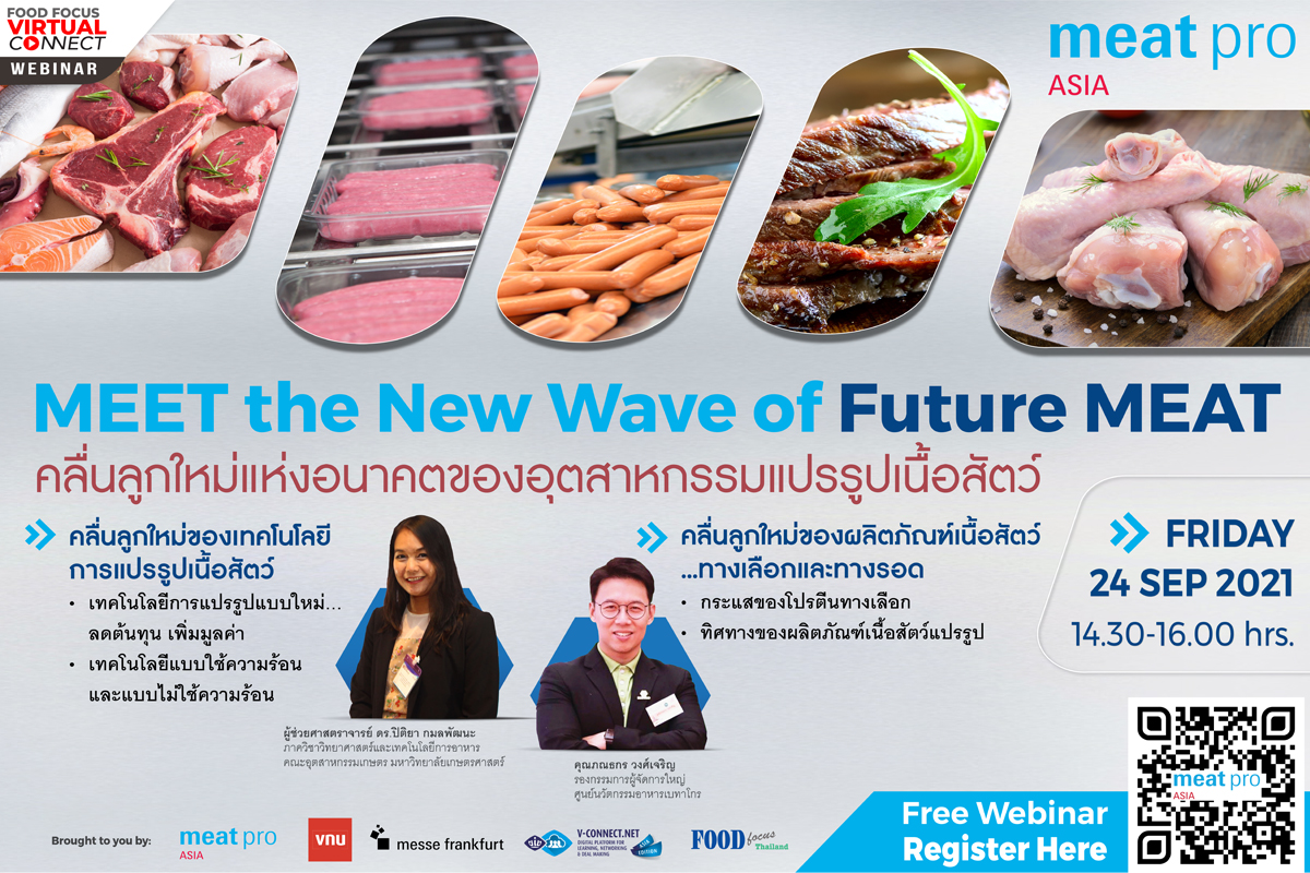 สถานการณ์ COVID-19 ส่งผลให้เกิดการเปลี่ยนแปลงในทุกขั้นตอนของกระบวนการผลิตผลิตภัณฑ์เนื้อสัตว์ จนกลายเป็นความปกติใหม่ (New Normal) ไม่ว่าจะเป็น เทคโนโลยีการแปรรูปแบบใหม่ ทั้งใช้และไม่ใช้ความร้อน เป็นต้น ผู้ประกอบการและผู้ที่เกี่ยวข้องจึงจำเป็นต้องรับมือและปรับตัวให้ทัน นอกจากนี้ ความท้าทายของโปรตีนทางเลือกยังเข้ามาพลิกมุมมองของการบริโภคเนื้อสัตว์ให้เปลี่ยนไป แรงกระเพื่อมทั้งหมดนี้ก่อให้เกิดคลื่นลูกใหม่ของอุตสาหกรรมเนื้อสัตว์แปรรูป