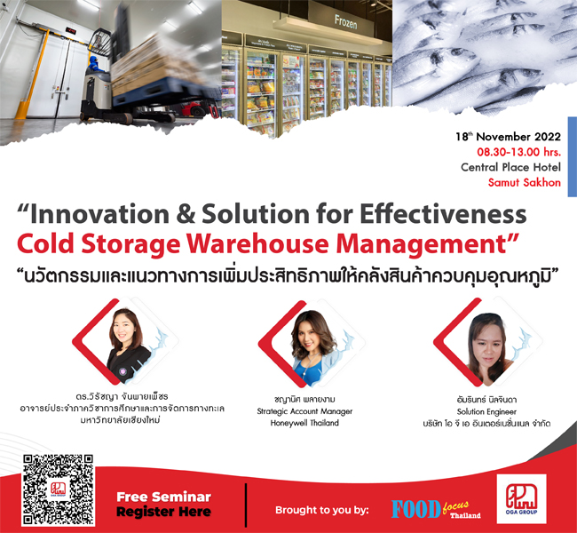 งานสัมมนาครั้งนี้ จะนำเสนอนวัตกรรมในการเพิ่มประสิทธิภาพของห้องแช่เย็น แช่แข็ง และคลังสินค้าควบคุมอุณหภูมิ ด้วยการนำเทคโนโลยีเข้ามาประยุกต์ใช้ เพื่อเพิ่มขีดความสามารถในบริหารจัดการ การเก็บรักษาผลิตภัณฑ์ การเพิ่มความปลอดภัย การใช้พลังงานหมุนเวียนเพื่อเพิ่มประสิทธิภาพและลดต้นทุน