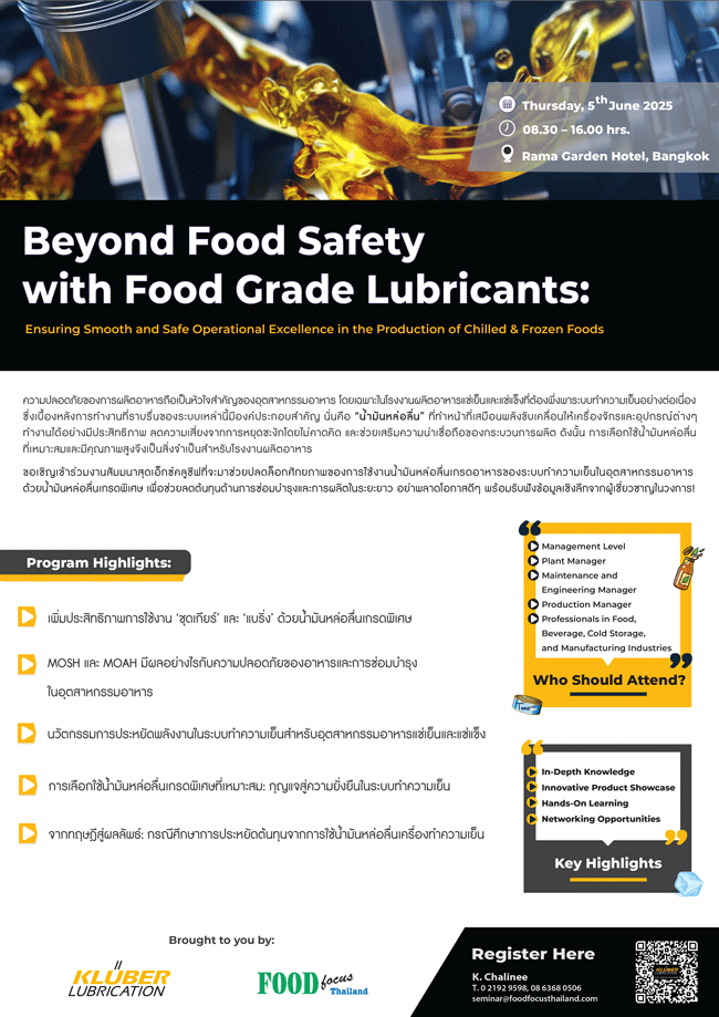 Food safety is the top priority in the food industry—especially in chilled and frozen manufacturing facilities, where reliable refrigeration systems are essential. Behind the seamless operation of these systems lies an often overlooked but critical component: lubricants. These lubricants serve as the driving force that keeps machinery and equipment running smoothly and efficiently, while minimizing unexpected breakdowns and reinforcing the reliability of the production process. Therefore, selecting the right high-quality lubricant is crucial for food manufacturers.