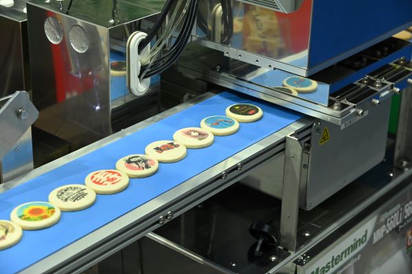 Cancelation of 2020 due to COVID-19 meant that over 100 new products and over 150 FOOMA JAPAN-announced products featured on this occasion. Here we introduce several notable products. These products also feature in clips on the FOOMA JAPAN website, so please refer there. For the cake-manufacturing industry, a customized decoration system for adorning cakes with cell-phone images, and a long through oven featuring IoT geared for mass production of baked cakes. For the meat-processing industry, presenting an all-automated system for slicing meat by weight to packing trays. An all-automated line for producing hand-rolled rice balls, and a compact dumpling-making machine for easy use on shop premises, also gathered interest.