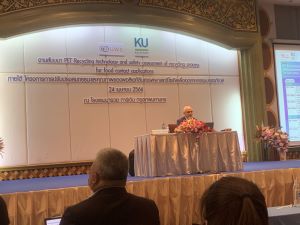 ทางหน่วยบริหารและจัดการทุนด้านการเพิ่มความสามารถในการแข่งขันของประเทศ (บพข.) ร่วมมือกับมหาวิทยาลัยเกษตรศาสตร์ ภาควิชาเทคโนโลยีการบรรจุและวัสดุ ได้จัดงานสัมมนา ภายใต้หัวข้อ “PET Recycling technology and safety assessment of recycling process for food contact applications” เมื่อวันที่ 24 เมษายน 2566 ที่ผ่านมา ณ โรงแรม มารวย การ์เด้น โดยได้เรียนเชิญผู้เชี่ยวชาญจากแขนงต่างๆ ที่เกี่ยวข้องกับ rPET มาพูดคุยถึงมุมมองที่น่าสนใจตั้งแต่แนวโน้มกฎหมายของพลาสติกชนิด rPET จากต่างประเทศ การจัดการกับวัตถุดิบที่จะนำมารีไซเคิล ตลอดจนการตรวจสอบว่าปริมาณสิ่งปนเปื้อนที่ส่งผลกระทบต่อการรีไซเคิลพลาสติก ไปจนถึงเทคโนโลยีที่จะช่วยให้การผลิตพลาสติกแบบแปรใช้ใหม่นี้มีคุณภาพมากยิ่งขึ้น เพื่อเป็นองค์ความรู้ให้แก่ผู้ประกอบการหรือผู้ที่สนใจเกี่ยวกับพลาสติกชนิดนี้
