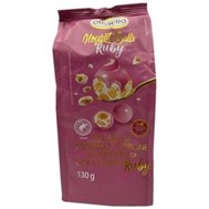 นูกัดบอลสีชมพูทับทิมจากแบรนด์ Oliviero คือ ขนมอัลมอนด์ตังเมเนื้อนุ่มเคลือบด้วยช็อกโกแลตที่ผลิตจากเมล็ดโกโก้สีทับทิม