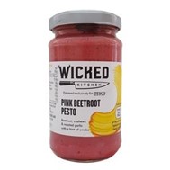 ซอสเพสโตบีทรูทสีชมพู จากแบรนด์ Wicked Kitchen ประกอบด้วยบีทรูท เม็ดมะม่วงหิมพานต์ เต้าหู้ และกระเทียมที่ผ่านการย่างเพื่อทำให้เกิดกลิ่นหอม ผลิตภัณฑ์อาหารจากพืชนี้ได้รับการกล่าวขานว่ามี
