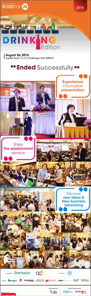 Food Focus Thailand Roadmap # 36: Drinking Edition วันเดียวที่รวบทุกข้อมูลด้านกฎหมายเทรนด์นวัตกรรมและการตลาดไว้ในแบบฉบับพร้อมดื่มดับกระหายแบบจุใจกับโซนแสดงสินค้าที่พร้อมเติมเต็มทุกรสชาติให้กับอุตสาหกรรมเครื่องดื่มที่พร้อมพัฒนาอย่างไม่หยุดนิ่ง