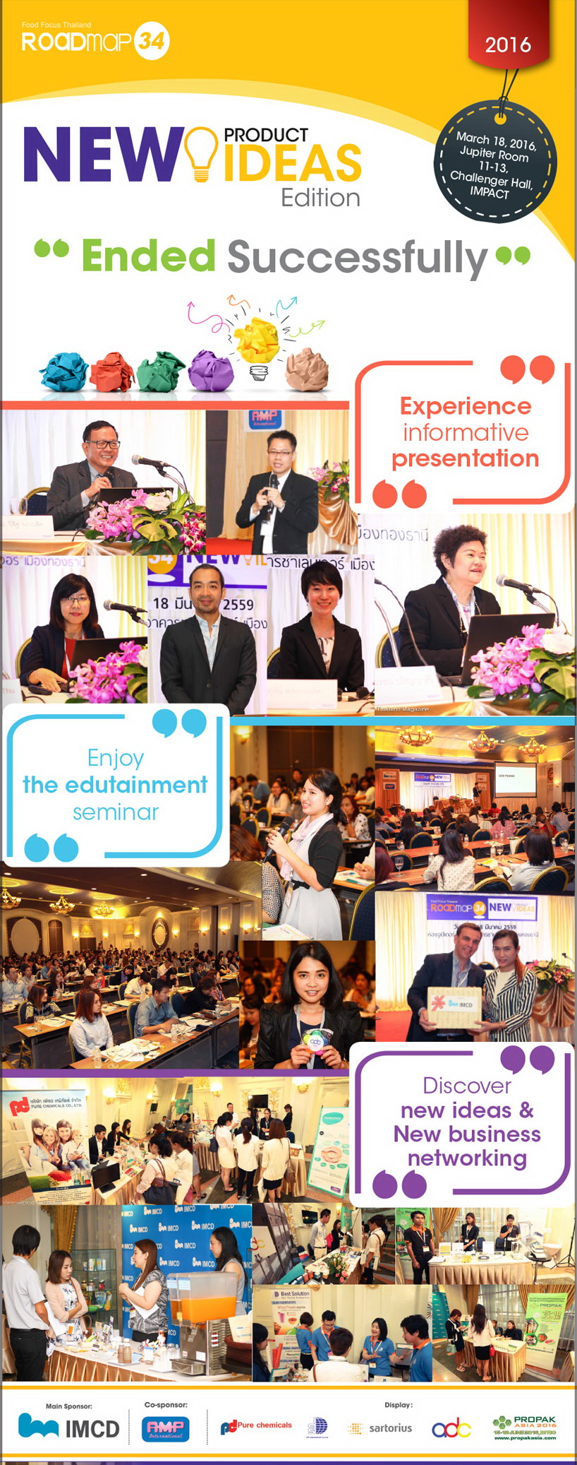 ฟู้ดโฟกัสไทยแลนด์โรดแมพจัดสัมมนาสร้างแรงบันดาลใจกับไอเดียในการพัฒนาผลิตภัณฑ์ใหม่โดยได้รับเกียรติจากวิทยากรผู้เชี่ยวชาญจากหลากหลายสาขาร่วมบรรยาย