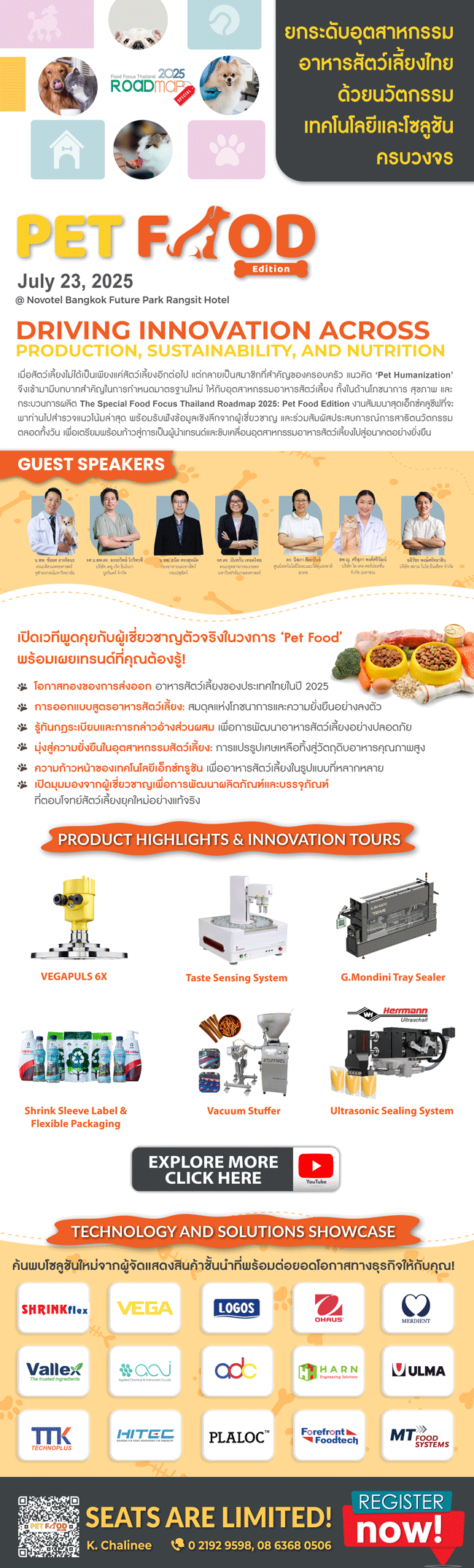 As the line between pets and family continues to blur, the pet food industry faces new challenges and opportunities. The Special Food Focus Thailand Roadmap 2025: Pet Food Edition invites you to explore how pet humanization is transforming pet nutrition, wellness, and production standards. Join us for a full day of expert presentations, live demonstrations, and exclusive insights that will help you craft products that meet the demands of pet parents and push the boundaries of innovation in the pet food industry.
