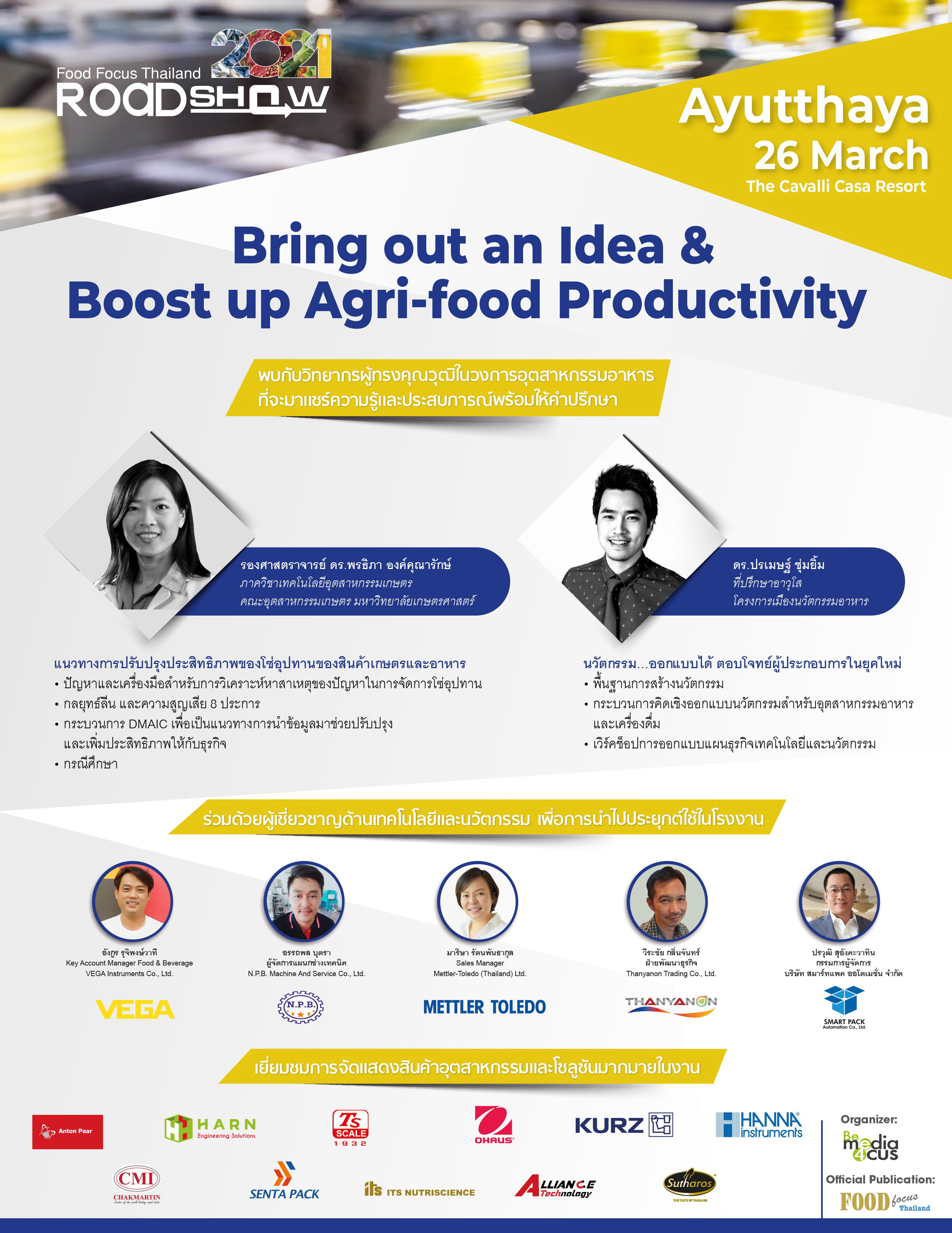นิตยสาร ฟู้ด โฟกัส ไทยแลนด์ เดินสายทั่วไทย ต่อเนื่องเป็นปีที่ 4 ต่อยอดความสำเร็จให้กับอุตสาหกรรมอาหารและเครื่องดื่มกับธีม “Bring out an Idea & Boost Agri-food Productivity” เพื่อร่วมสนับสนุนให้อุตสาหกรรมอาหารและเครื่องดื่มของประเทศไทยครองตำแหน่ง “Kitchen of the World”