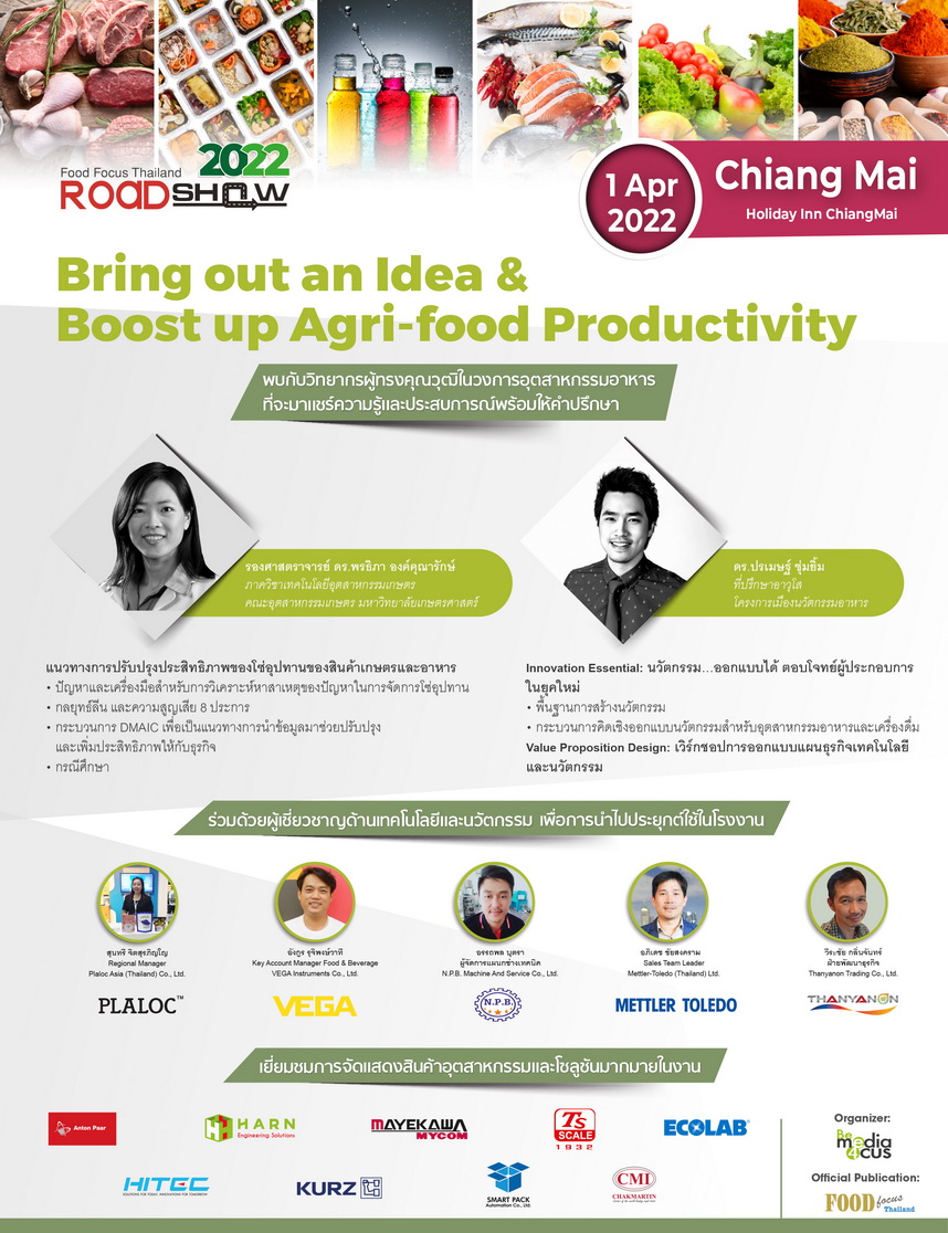 นิตยสาร ฟู้ด โฟกัส ไทยแลนด์ เดินสายทั่วไทย ต่อเนื่องเป็นปีที่ 4 ต่อยอดความสำเร็จให้กับอุตสาหกรรมอาหารและเครื่องดื่มกับธีม “Bring out an Idea & Boost up Agri-food Productivity” เพื่อร่วมสนับสนุนให้อุตสาหกรรมอาหารและเครื่องดื่มของประเทศไทยครองตำแหน่ง “Kitchen of the World”