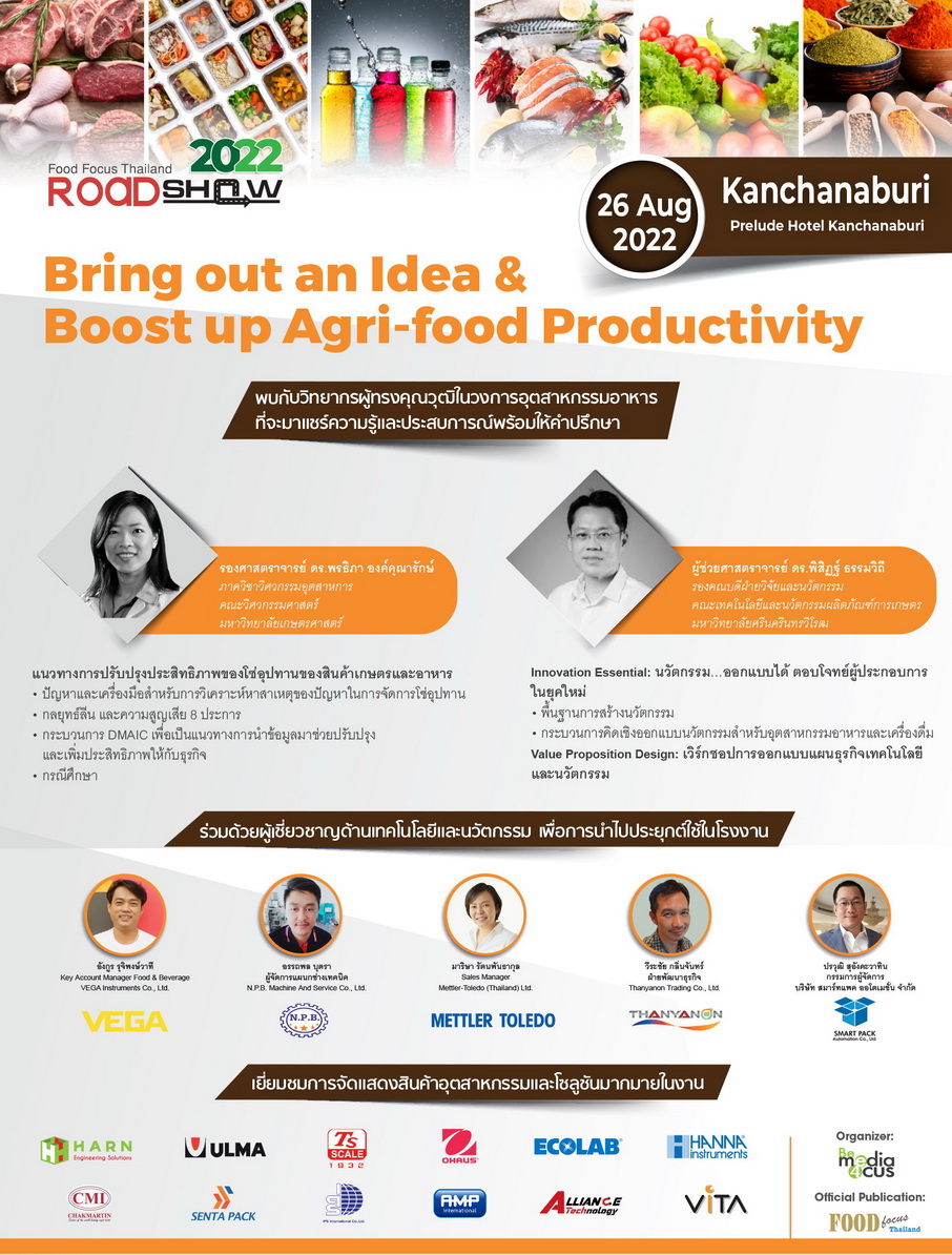 นิตยสาร ฟู้ด โฟกัส ไทยแลนด์ เดินสายทั่วไทย ต่อเนื่องเป็นปีที่ 4 ต่อยอดความสำเร็จให้กับอุตสาหกรรมอาหารและเครื่องดื่มกับธีม “Bring out an Idea & Boost up Agri-food Productivity” เพื่อร่วมสนับสนุนให้อุตสาหกรรมอาหารและเครื่องดื่มของประเทศไทยครองตำแหน่ง “Kitchen of the World”