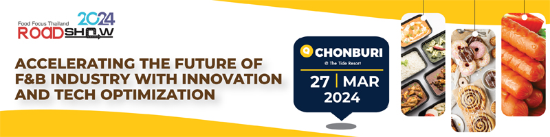 Food Focus Thailand Roadshow 2024 พร้อมเป็นส่วนหนึ่งในการร่วมผลักดันอุตสาหกรรมอาหารของไทยให้ก้าวสู่การเป็นศูนย์กลางผลิตและส่งออกอาหารระดับภูมิภาค (Regional Food HUB) พร้อมสนับสนุนให้อุตสาหกรรมอาหารและเครื่องดื่มของไทยเติบโตอย่างมั่นคงพร้อมรับมือวิกฤตอาหารโลก กับการจัดงานสัมมนาในธีม “ACCELERATING THE FUTURE OF F&B INDUSTRY WITH INNOVATION AND TECH OPTIMIZATION” ขับเคลื่อนอนาคตอุตสาหกรรมอาหารและเครื่องดื่มด้วยนวัตกรรมและเทคโนโลยี