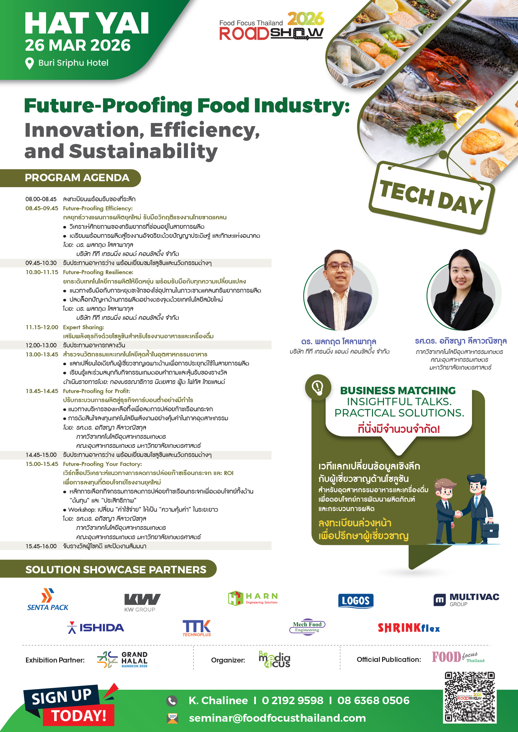 ร่วมผลักดันอุตสาหกรรมอาหารไทยให้เป็นศูนย์กลางการผลิตและส่งออกอาหารระดับภูมิภาคด้วยนวัตกรรมและความยั่งยืน พร้อมโอกาสในการสร้างการรับรู้แบรนด์ ขยายฐานลูกค้าเป้าหมาย และครองส่วนแบ่งการตลาดในอุตสาหกรรมอาหารและเครื่องดื่มที่เติบโตอย่างต่อเนื่อง