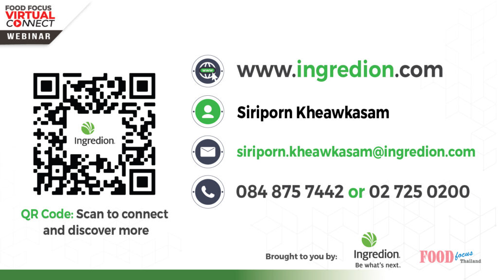 Q: อยากให้ช่วยสรุปข้อดีของ Ingredion Ingredient ใน Concept Clean & Simple Ingredints