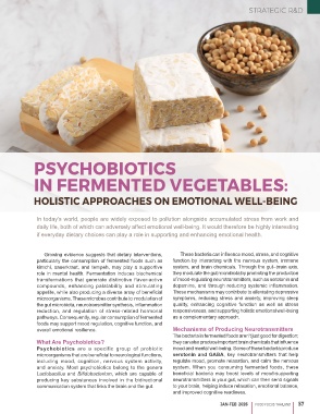 kimchi, sauerkraut, and tempeh, may play a supportive system, and brain chemicals. Through the gut–brain axis,