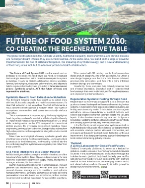 pillars: symbiotic growth, AI & the future of food, and and enhance traceability. Blockchain and IoT systems track