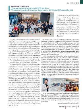 ที่่�เฉี่ยุบคมและที่รงประสู่ิที่ธุิภาพื่ บริษััที่ ซัาโต้้ ออโต้้-ไอด่ Solutions” to showcase how RFID can accelerate industrial