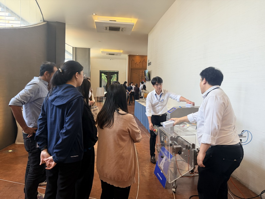หนึ่งในกิจกรรมสำคัญที่สร้างความประทับใจแก่ผู้เข้าร่วมสัมมนา คือ การสาธิตการทำงานของเครื่องตรวจสอบคุณภาพ ซึ่งช่วยให้ผู้เข้าร่วมงานได้เห็นทั้งลักษณะการใช้งานจริงและความสามารถในการตรวจจับที่ตอบโจทย์สำหรับโรงงานอาหารโดยเฉพาะ