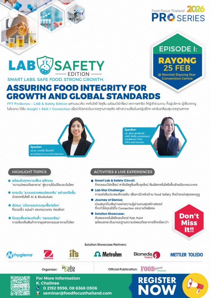 ในอุตสาหกรรมอาหารที่การแข่งขันรุนแรงขึ้นทุกวัน “ความเชื่อมั่น” คือปัจจัยที่สร้างความแตกต่างให้กับแบรนด์ นอกเหนือจากคุณภาพและรสชาติที่ต้องตอบโจทย์ความต้องการแล้ว การตรวจสอบความปลอดภัยและควบคุมคุณภาพให้ได้ตามมาตรฐานจึงไม่ใช่เพียงหน้าที่ของห้องแล็บอีกต่อไป แต่กลายเป็นกลยุทธ์สำคัญในการสร้างคุณค่าและความได้เปรียบทางธุรกิจ